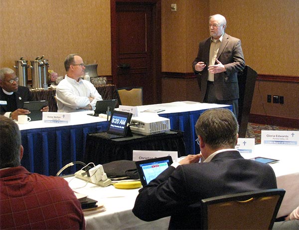 The Rev. John Fale, executive director of the Synod’s Office of International Mission, gives a presentation on that office’s work during the Nov. 19-20 LCMS Board of Directors meeting in Atlanta. (LCMS/Joe Isenhower Jr.)