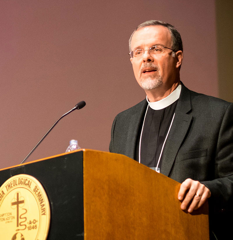 The Rev. Dr. Paul Grime speaks about Lutheran Service Book as the Good Shepherd Institute marked the hymnal’s 10th anniversary. (LCMS/Michael Schuermann)