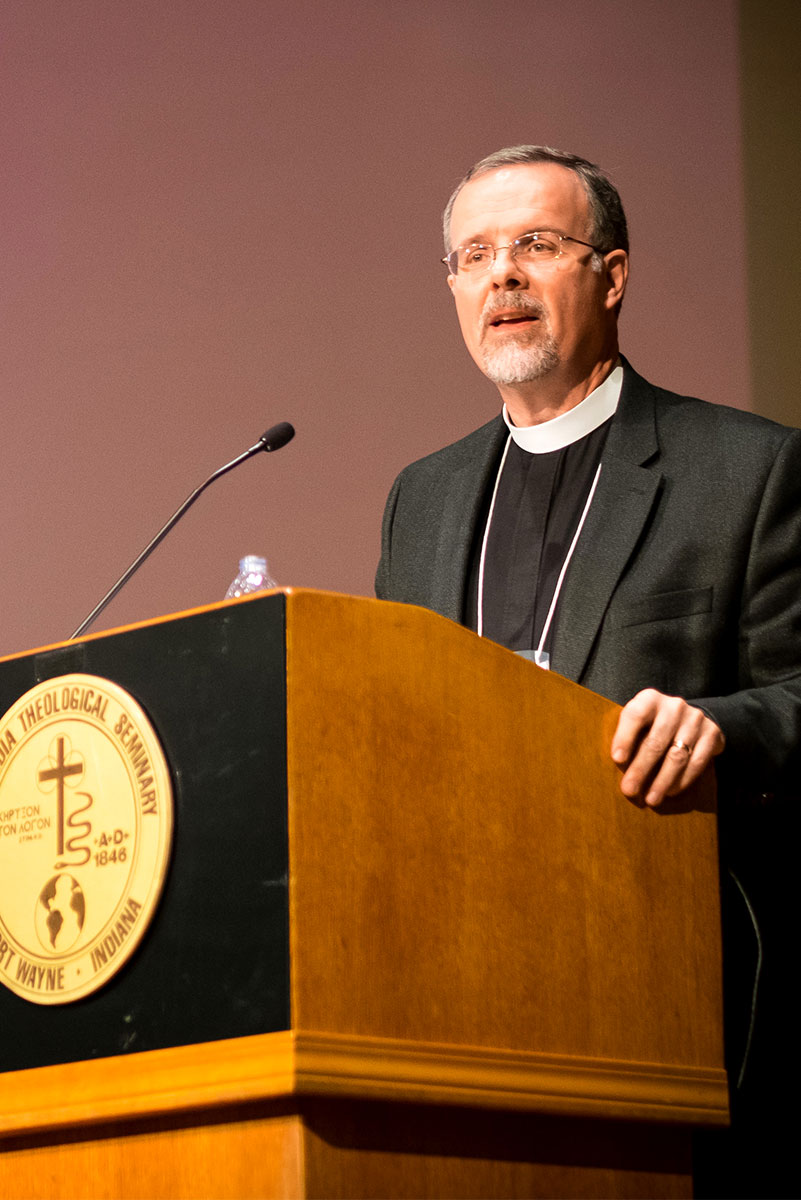 The Rev. Dr. Paul Grime speaks about Lutheran Service Book as the Good Shepherd Institute marked the hymnal’s 10th anniversary. (LCMS/Michael Schuermann)