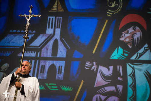 The Rev. Allen Braun of Mount Hulda Lutheran Church in Cole Camp, Mo., served as crucifer at the opening Divine Service of the 66th Regular Convention of The Lutheran Church—Missouri Synod on Saturday, July 9, in Milwaukee. (LCMS/Erik M. Lunsford)
