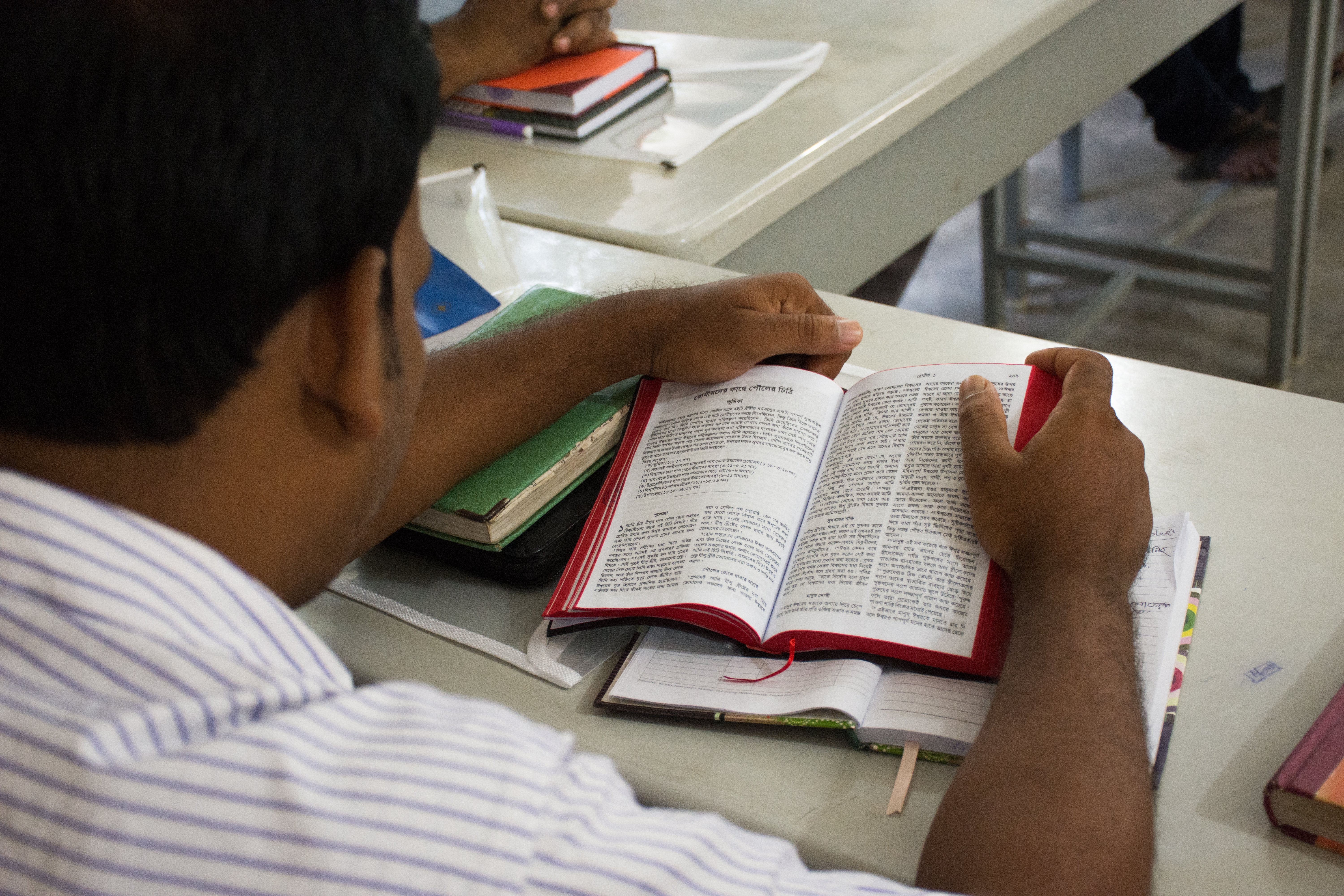 Dr. Cortright taught on Romans 1–8, pictured here in Bangla.