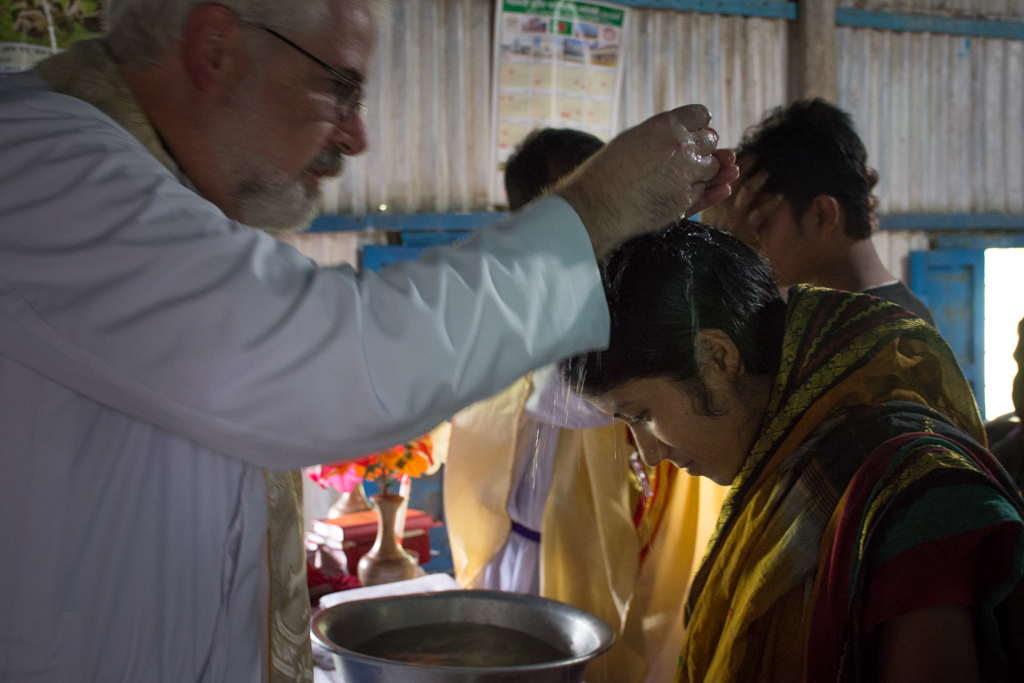 The Rev. Roger James assists in the baptism of 40 Bangladeshis.