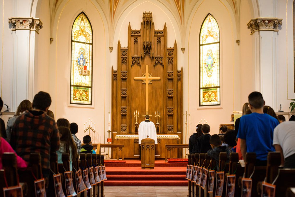 The Rev. Jack Gilbert, pastor at St. John’s Lutheran Church, leads chapel for the school on Wednesday, Nov. 15, 2017, in Racine, Wis. (LCMS/Erik M. Lunsford)