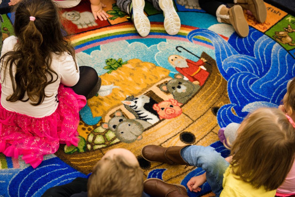 Preschool JK3 students listen to a story at St. John’s Lutheran School on Wednesday, Nov. 15, 2017, in Racine, Wis. (LCMS/Erik M. Lunsford)