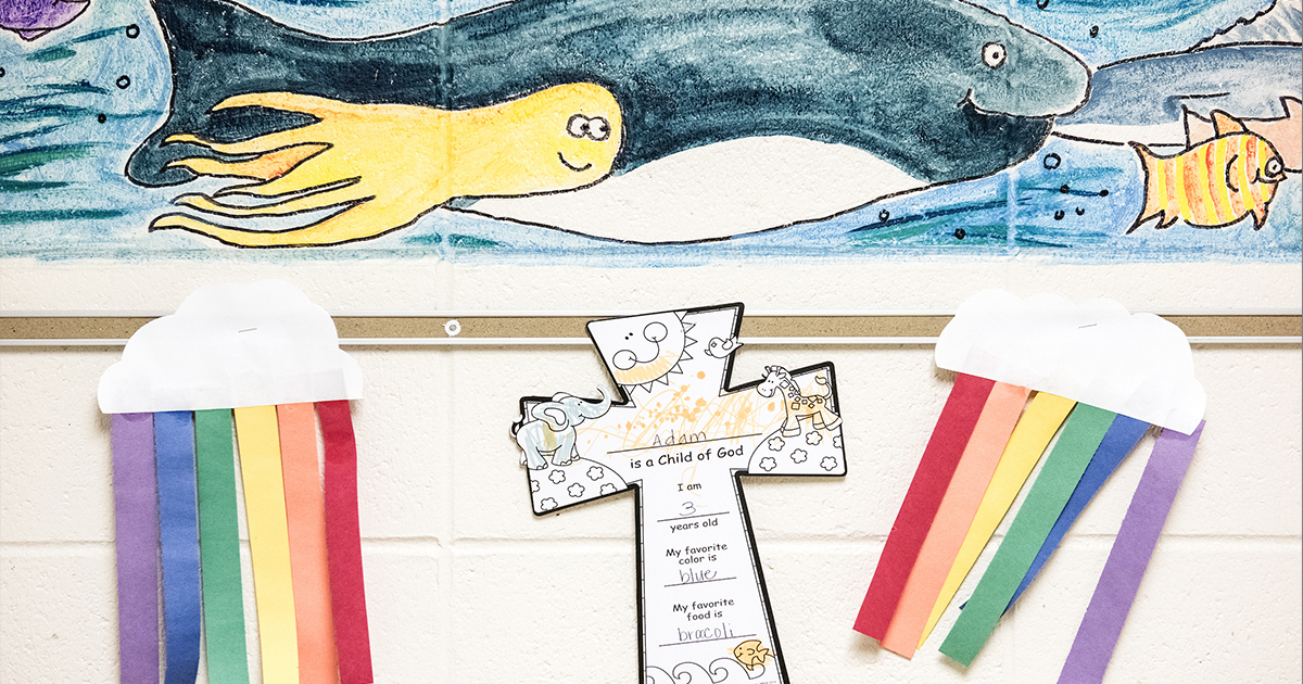 Student work hangs on a wall at First Immanuel Lutheran School in Cedarburg, Wis., in 2016. (LCMS/Erik M. Lunsford)