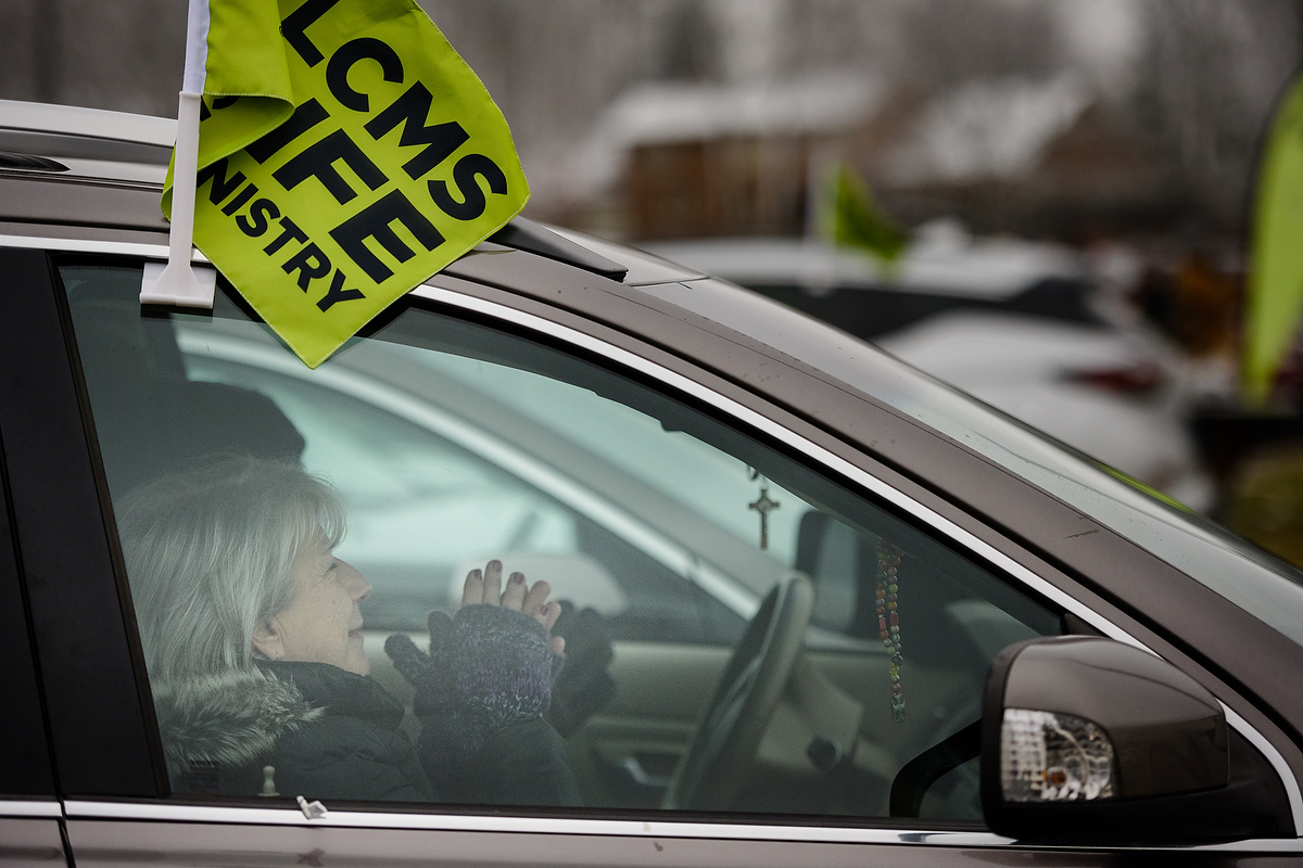 Linda Just listens to the radio broadcast during the March for Life Chicago drive-in rally on Saturday, Jan. 16, 2021, at Concordia Theological Seminary, Fort Wayne, Ind. Next to her is the Rev. Dr. Arthur A. Just Jr., professor of Exegetical Theology at CTSFW and LCMS missionary in the Latin America and Caribbean region. LCMS Communications/Erik M. Lunsford
