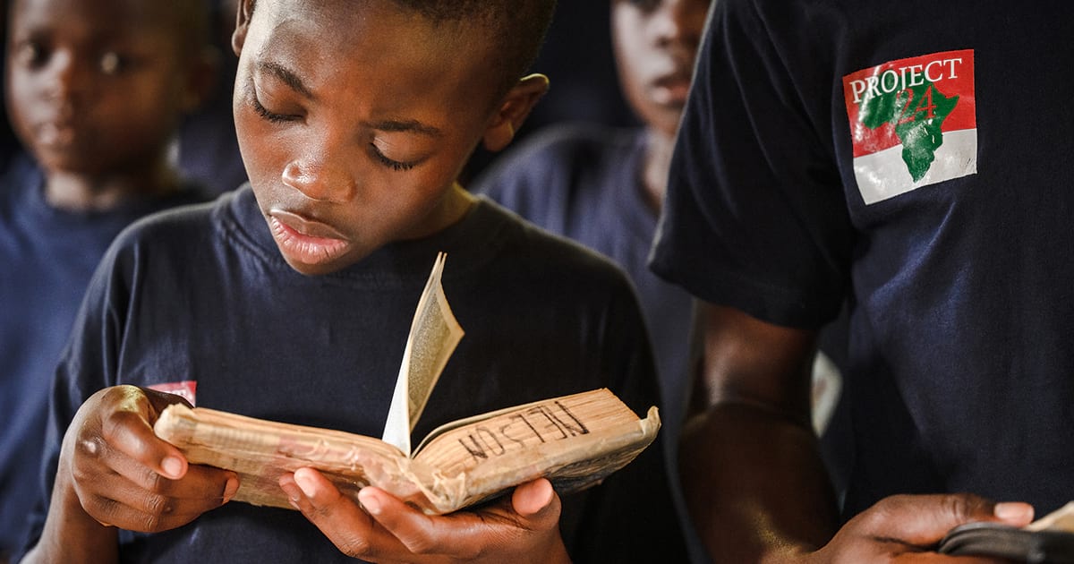Young men and boys of the Othoro ELCK (Evangelical Lutheran Church in Kenya) Project 24 site worship on Sunday, Feb. 20, 2022, at the Othoro ELCK parish in western Kenya. LCMS Communications/Erik M. Lunsford