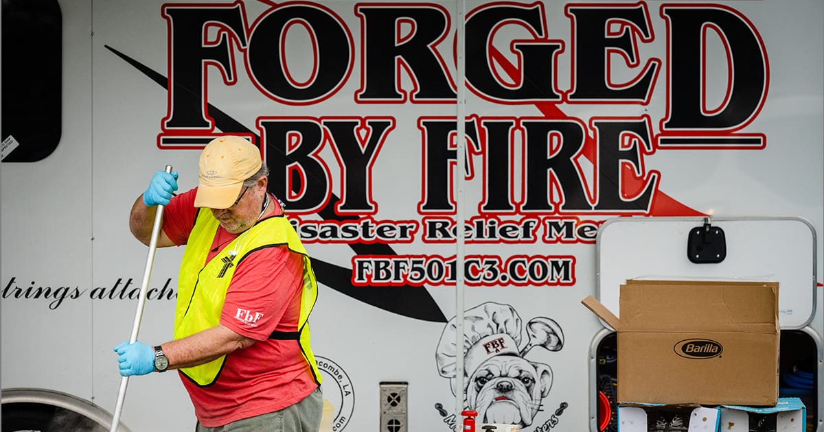 Forged by Fire cook Walt Organ of The Village Lutheran Church, Lacombe, La., prepares a pot of noodles on Tuesday, Jan. 31, at Trinity Lutheran Church, Selma, Ala. (LCMS/Erik M. Lunsford)