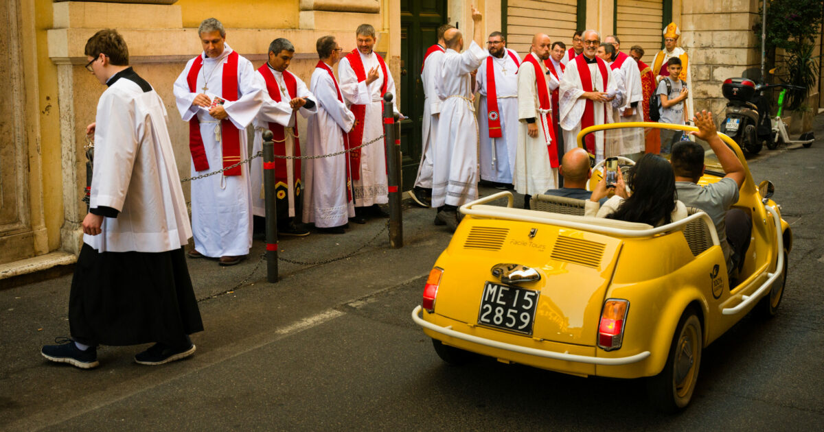 outside a church building in Rome. But a group of Lutheran pastors? What’s happening here?