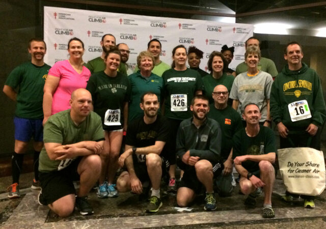 The Stair Climb Team of Concordia Seminary, St. Louis, takes part in the annual fundraiser for the American Lung Association April 2 in St. Louis.